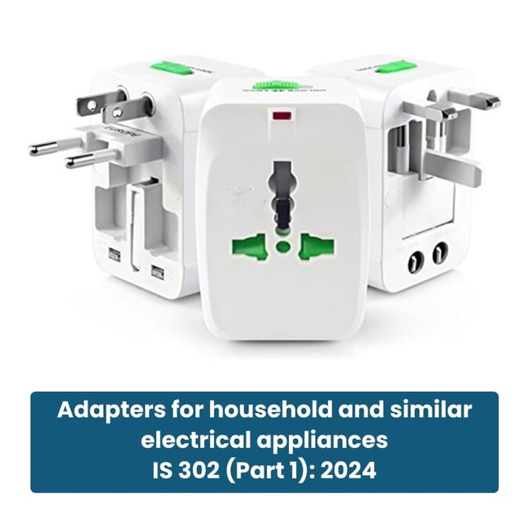Ensures Electrical Safety: Adapters connect directly to electrical outlets and supply power to electronic devices. Compliance with IS 302 (Part 1): 2024 ensures protection against electric shocks, overheating, and electrical faults.