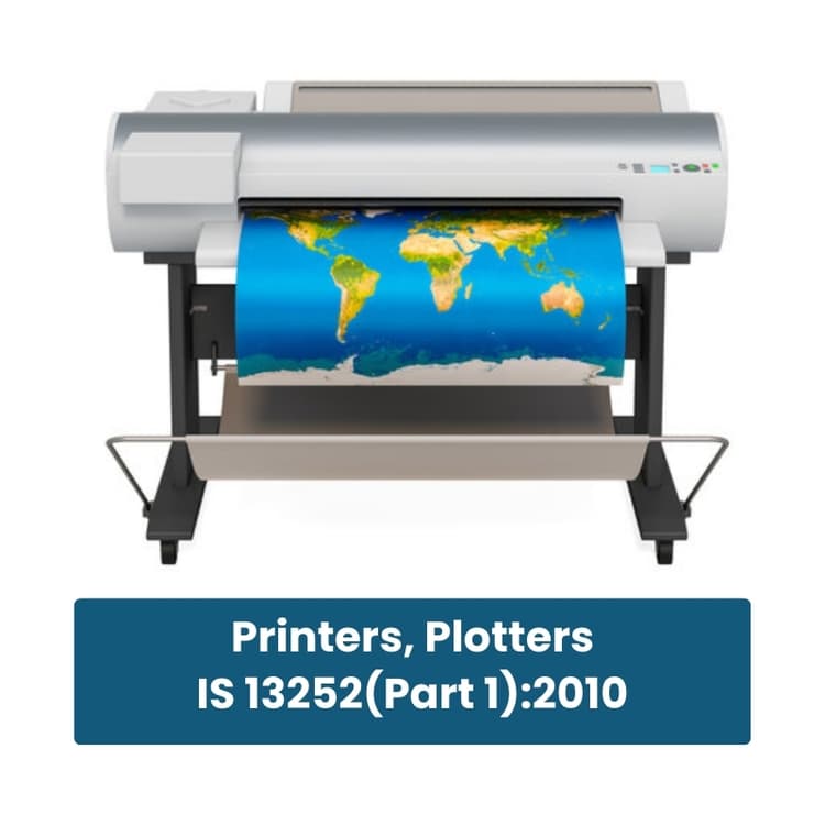 IS 13252 (Part 1): 2010 is the Indian Standard issued by BIS that specifies safety requirements for information technology (IT) equipment, including printers and plotters. Under the BIS Compulsory Registration Scheme (CRS):