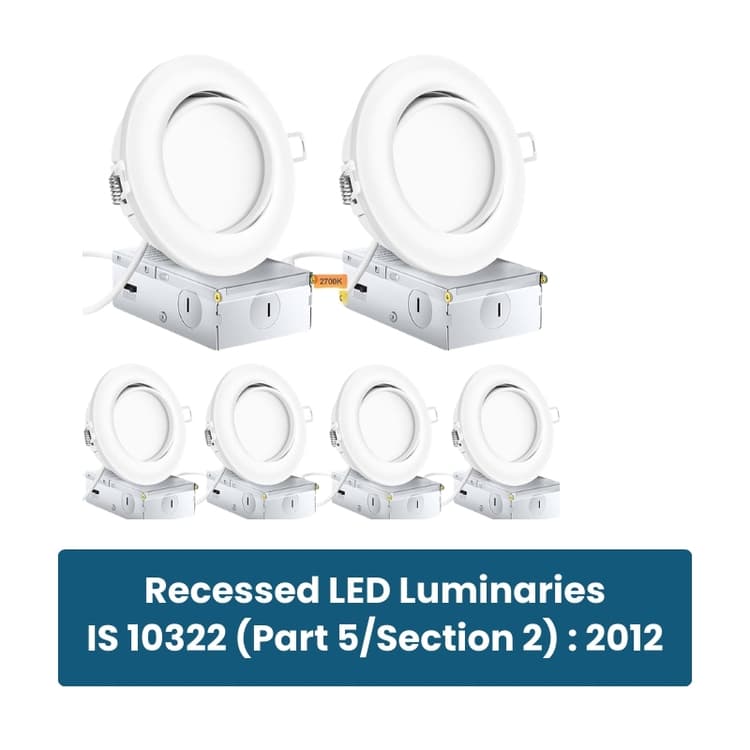 Ensures Electrical Safety: Recessed luminaires are installed within ceilings or enclosed structures, making electrical safety extremely important. Compliance with IS 10322 (Part 5/Section 2): 2012 ensures protection against electric shocks and electrical hazards.