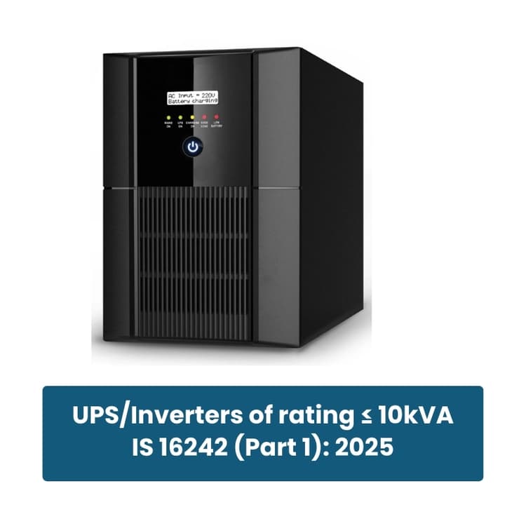 Uninterruptible Power Supply (UPS) systems and inverters play a crucial role in ensuring a stable and reliable power supply, especially during outages. To guarantee their safety and efficiency, these devices must comply with the Indian Standard for UPS/inverters, IS 16242 (Part 1): 2014 - a mandatory requirement set by the Bureau of Indian Standards (BIS).