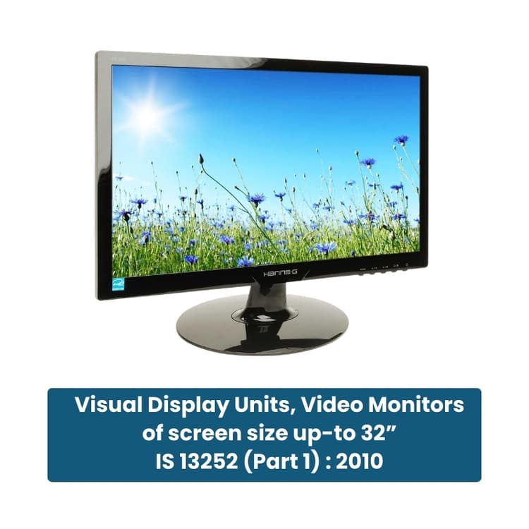 IIS 13252 (Part 1): 2010 specifies the safety requirements for Information Technology Equipment, including Visual Display Units (VDU up to 32 inches). Compliance ensures electrical safety, hazard protection, and quality performance, including: