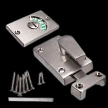 Indicating bolts for use in public baths and lavatories are specialized fasteners designed to provide privacy and functionality. These bolts are equipped with an indicator mechanism that displays whether a door is locked or unlocked, ensuring ease of use in communal spaces. Manufactured from durable materials,