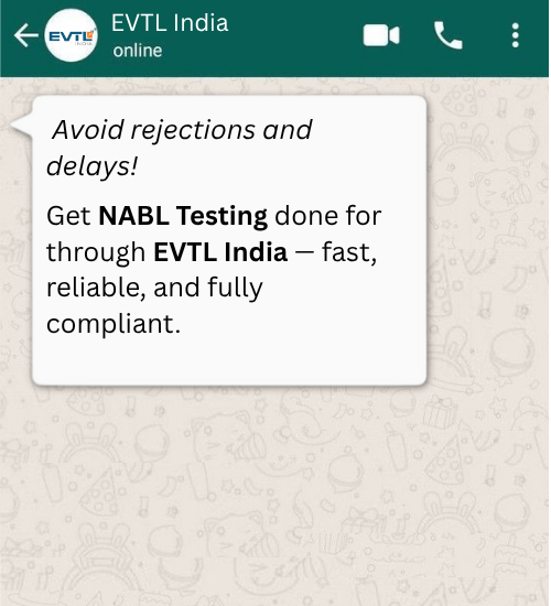 Looking to get your products NABL tested in India? EVTL India, a trusted consultancy, assists businesses in accessing NABL-accredited laboratories for reliable and recognized testing services. Our expert team helps you identify the right labs, coordinate testing requirements, manage documentation, and ensure reports meet regulatory and industry standards. With dedicated support, timely updates, and end-to-end assistance, we make your NABL testing process smooth, efficient, and hassle-free.